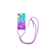 Apple iPhone 15 - Gumiran ovitek z vrvico (TPUVr) - Modro vijoličen s tekočimi srčki