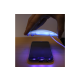 6. Vključite UV svetilko in z njo svetite po ekranu 2-3 minute (za priklop svetilke potrebujete microUSB ali Type-C polnilni kabel in adapter za polnjenje). Svetite po celotni površini enakomerno, tudi po robovih stekla. Če vam še kaj lepilne tekočine izteče izpod stekla, jo hitro obrišite s krpico, da ne zalije katere od tipk na telefonu. Po namestitvi odstranite lepilni trak z zvočnika.