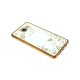 Gumiran zaščitni ovitek (TPUE - zlata rob, bele rožice) za mobilni telefon Samsung A310 Galaxy A3 (2016) iz kakovostnega TPU materiala. Izredno trpežen in vzdržljiv ovitek, ki vam omogoča dostop do vseh gumbov in funkcij telefona.